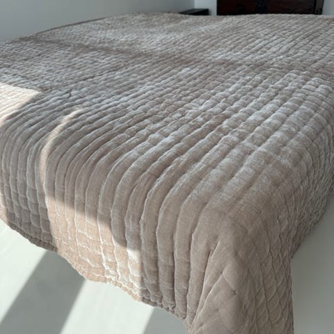 Et luksus elegante sengetæppe som ses på billeder der giver en luksuriøs følelse i soveværelset, varm og hyggelig på samme tid.