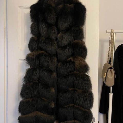 Jakke, str. 34, Meteo by Yves Salomon , Taupe, Kanin og silke, Næsten som ny, 3/4 ærmer. Lukkes med hægter. Klassisk kort jakke i kanin.