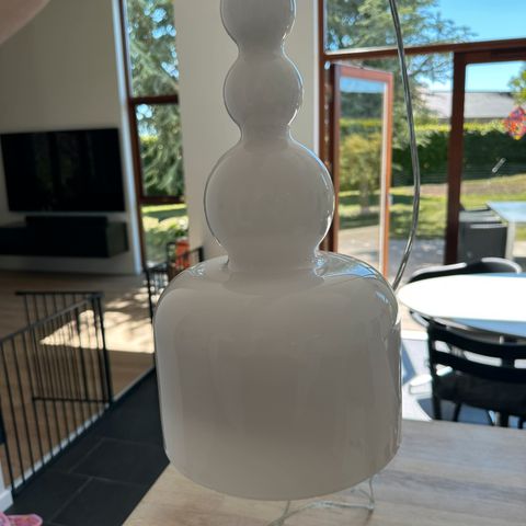 Pendel, IKEA, Loftslampen i hvidt glas. Giver godt og behageligt lys, uden at blænde. Ø 38, H 26 cm.
