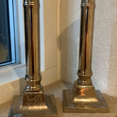 En meget smuk lysestage fyldt med skinnende sorte sten.