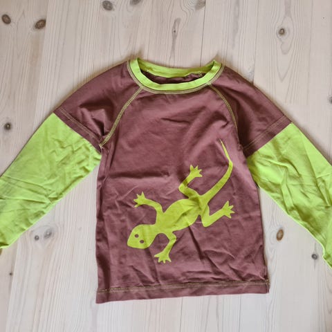 kortærmet bluse, stribet, grøn, bomuld. str 98-104. Fra røgfrit hjem. Sender gerne med gls. Køber betaler porto. Skriv på annoncen. (Caro)(B6)(25)