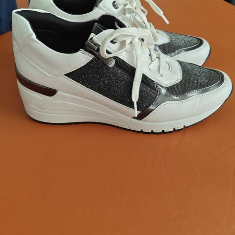 Sneakers, str. 38, Marco Tozzi, Beige, Ruskind, God men brugt, Sneakers med sølv nittet brugt få gange. Fra røg og dyrefrit hjem.