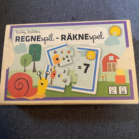 Regnespil, puslespil, alder 4+, fra røgfrit hjem. Sender gerne med gls. Køber betaler porto. Skriv på annoncen. (H)(reol)(24)