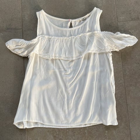 Hvid top / tanktop fra H&M i str. 146/152 med rød og sort skrift på og en fisk