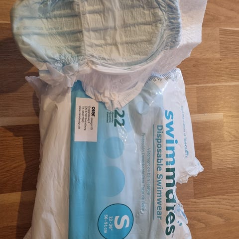 2 svømmebleer og en almindelig ble 7-12 kg / 2 swimming diapers and one normal diaper 7-12 kg