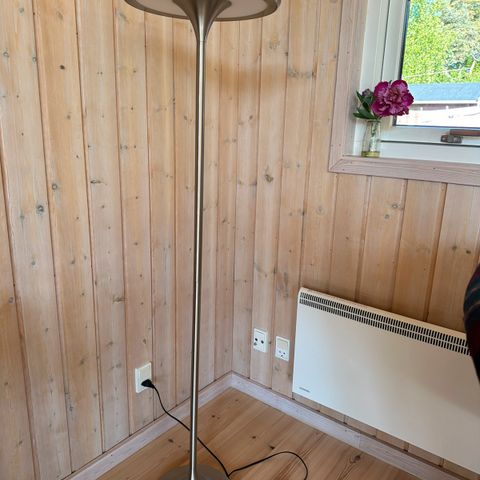 2 Gulvlamper i sort metal med hvid skærm. Lampen har dekorative detaljer i form af snoede metalrør og et hjerteformet element øverst. Velegnet til brug som læselampe eller stemningsbelysning i stuer eller værelser. Højde 120 m Kan sælges enkeltvis eller samlet