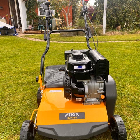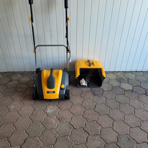 3-i-1 elektrisk vertikalskærer til 230V, der kan vertikalskærer, lufte græsplænen og opsamle.