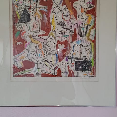 Litografi, Jes Nordby, motiv: Se billedet, b: 50 h: 70, Glad og farverig litografi med signatur af Jes Nordby.