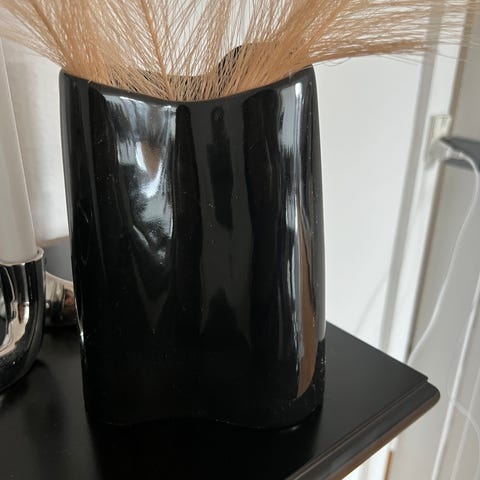 Keramik vase med striber. Jeg har brugt den til at have pensler i.