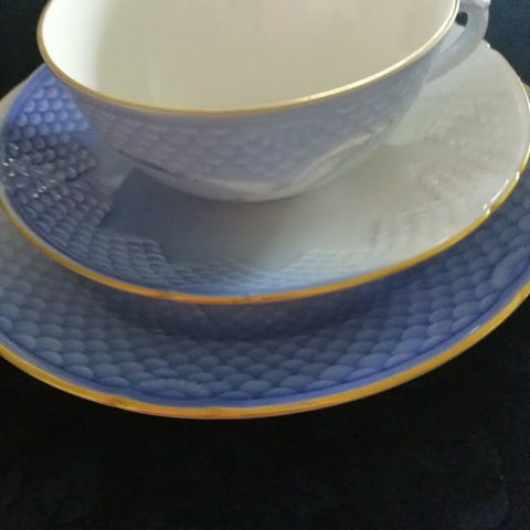 Porcelæn, MÅGE THEKOPPER, SUPPESKÅLE, B&G MÅGE M/GULD, Mågestel m/ guld: