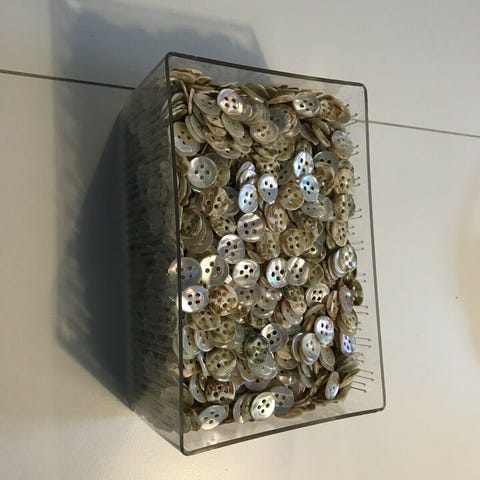 Små perlemors knapper. 25 stk i rør. 75 kr