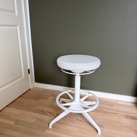 Flot Lidkullan taburet fra IKEA som er perfekt til en aktiv siddestilling, enten ved hæve/sænkebordet eller måske som barstol i køkkenet.