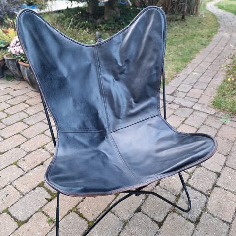 Det smukke brune skind er koskind og bliver kun mere smukt og lækkert i brug.