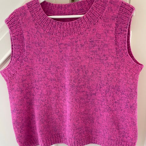 Vest, Hjemmestrikket, str. 44, En utrolig flot vest i smukke nuancer. Vesten er strikket i str. XL/44