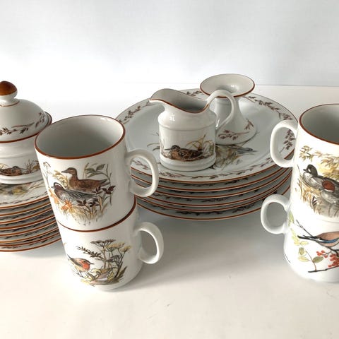 Kaffe og spisestel til 6 personer, minus en kop.