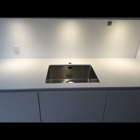 Bordplade, Corian Dupont i grøn, Bordplade af Dupont Corian med undersænket vask. I grøn.