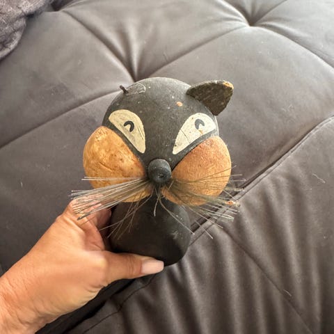 Gammel mekanisk legetøjs kat med optræks nøgle. Den virker.