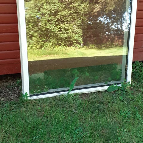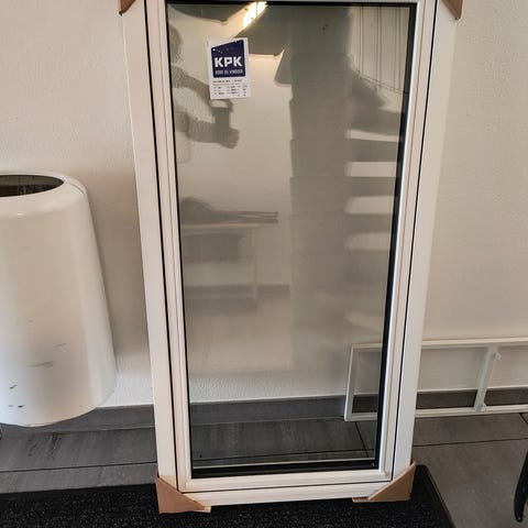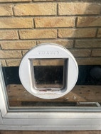 Vindue med kattelem, lavet at glarmester i 2023. Samt selve ruden er også derfra. Kattelemmen kan låses både inde og ude.