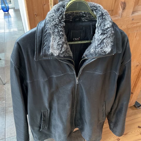 Skindjakke, str. L, Molltan, sort, skind, God men brugt, Herrejakke skind kort sort str 62 sælges for 250 kr