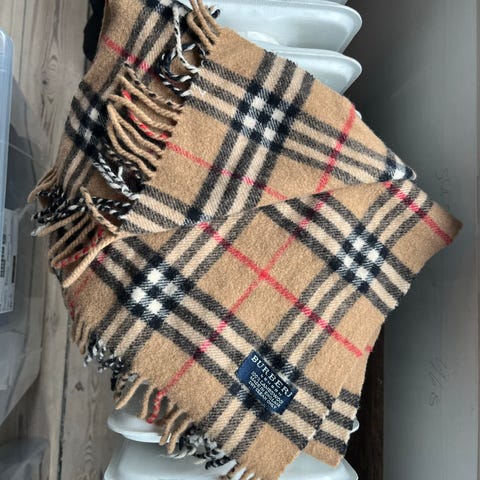 Ikonisk Burberry halstørklæde 100% cashmere. Made in Scotland.