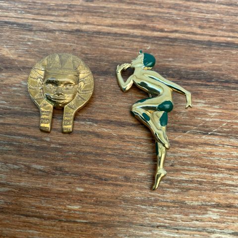 2 fine gamle brocher af Christel Marott. Den ene er i messing, den anden forsølvet. Den forsølvet er ikke set så tit. Men de er sjældne begge to. Ikke mange har overlevet. Mål er på billederne. Messing 500kr, forsølvet 600kr eller begge for 1000kr
