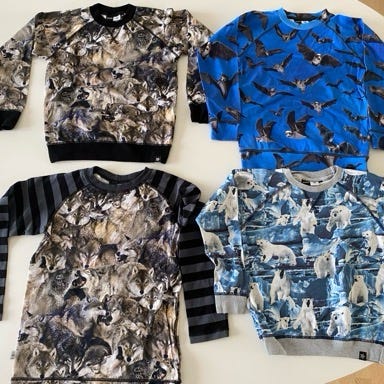 Blå flagermus bluse og ulvebluse er kun vasket, ej brugt. 150kr per styk (nypris er 400kr stykket).