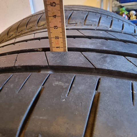4-5mm tilbage på alle dækkene.