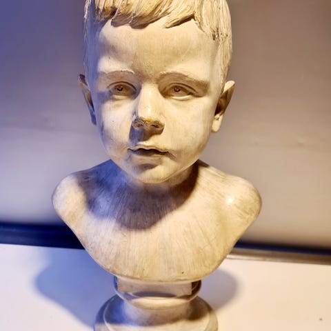 Byste, Italiensk lertøj, 35 år gl., Virkelig smuk Byste, stående på Piedestal. Stammer fra Italien.