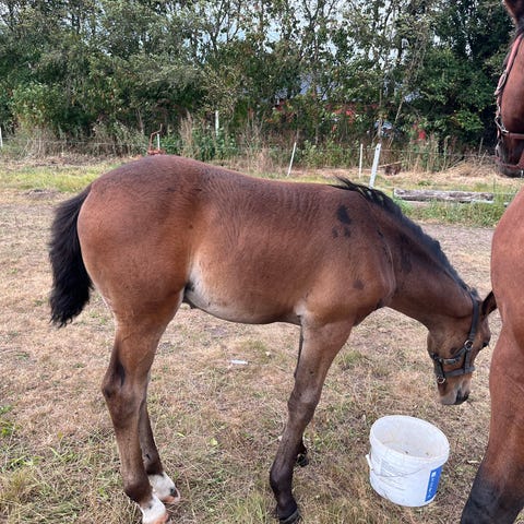 Han kan trækkes med, få smed osv. vokser op med andre føl og altid fodret med foder til avlshopper og føl, med lav stivelse og lav udfodring.
