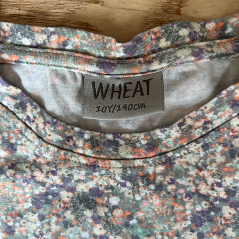 Beige t-shirt fra Wheat i maritimt tema med skibe, redningskranse, ankre og fisk.