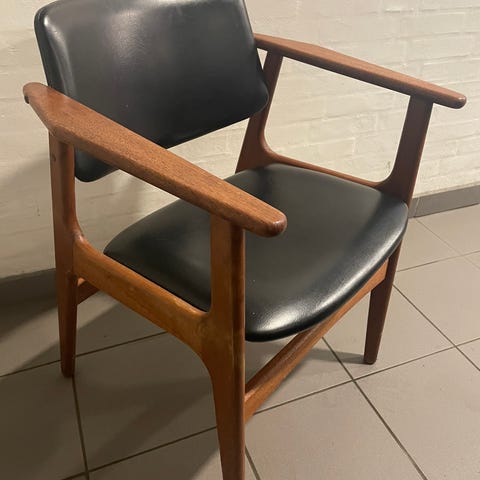 Arne Vodder – Armstol model Lene i mørkbejdset teak – Nypolstret