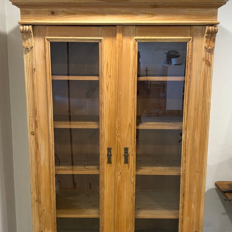 Osteskab, Dansk, Charmerende gammelt Osteskab fra vores Mormors tid af, fint til forretning & udstilling af ting ,kan jo evt sætte glashylder i. Henv. SMS til 61687009 kig Birgers Brocante på Instagram.