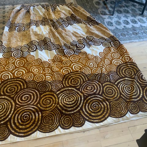 Garnisette retro Mønstret Gardin med spiraldesign i brun og hvid. Lavet af polyester. Velegnet til stue eller soveværelse for at tilføje et dekorativt element.