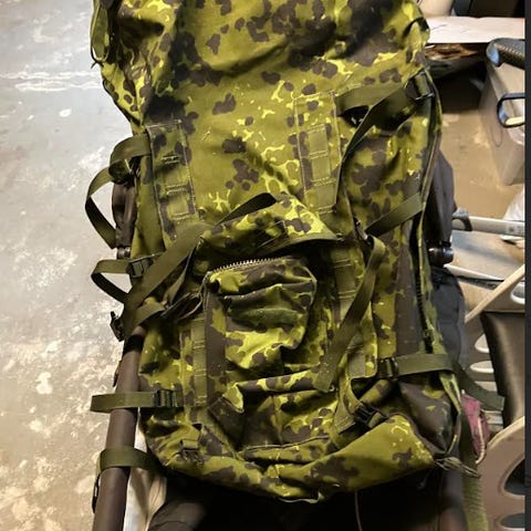 Rummelig rygsæk. Indeni er der et stort rum samt et lille rum. I siderne er der plads til drikkedunke/flasker. På forsiden er der et rum/en lomme med lynlås. Dette rum er meget fleksibelt, da det er dannet af et net.