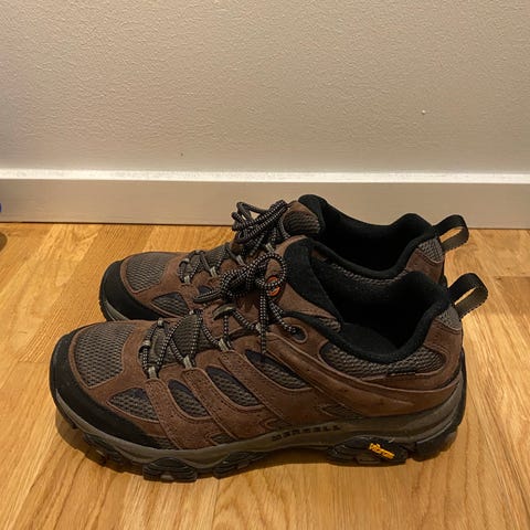 Købt for ca to år siden. Brugt det første år og bare været opbevaret hjemme det seneste år. Mine fødder blev desværre aldrig gode venner med dem, og jeg måtte købe andre sko med lavere hældning fra hæl til tå og fladere svangstøtte.