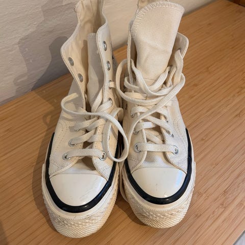 Converse sneakers i hvid kun brugt meget lidt. Størrelse er 4½. Måler 25 cm fra hæl til tå.