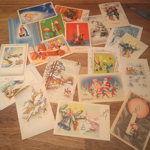Gamle julekort og 1 påskekort