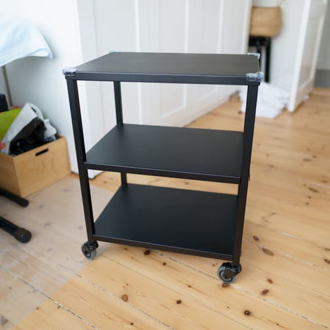 Brugt rullebord som kan justeres i højden fra 50 til 60 cm. Bordpladen er grå.