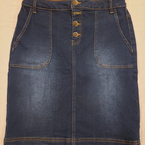 Unik denimnederdel - upcycled jeans-into-skirt med vintage håndarbejde på