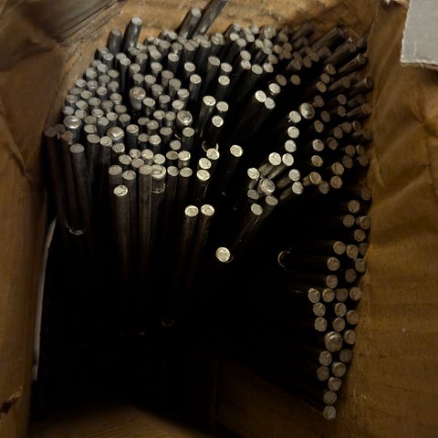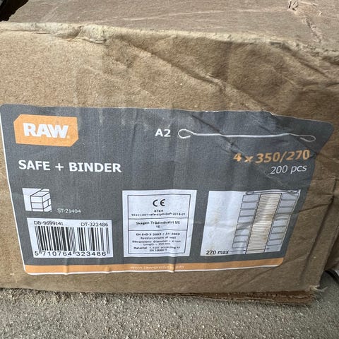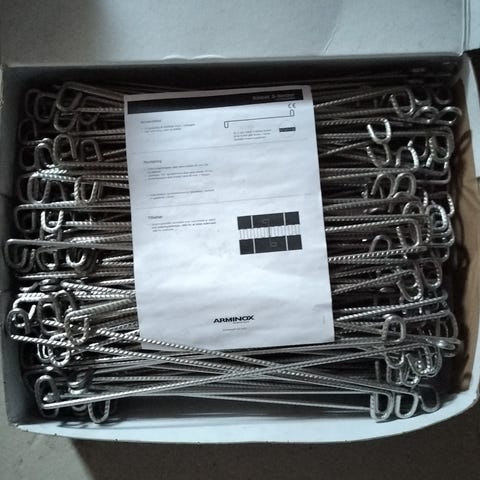 UMBA Ekspansions indbanknings bindere. 4 mm rustfrit stål. Længde 260 mm : 140 stk ( nypris 15 kr/stk ) . Længde 300 mm : 7 stk. Indskruningsbindere 4 mm rusfrit stål. Længde 300 mm : 38 stk. Længde 260 mm : 30 stk. En brugt indbanknings dorn ( 400 mm lang ) ( Ny pris 900 kr )