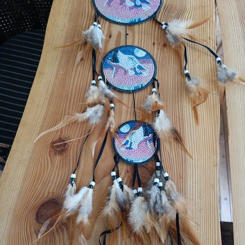 Lille drømmefanger/dreamcatcher med shaman bison hovede på.