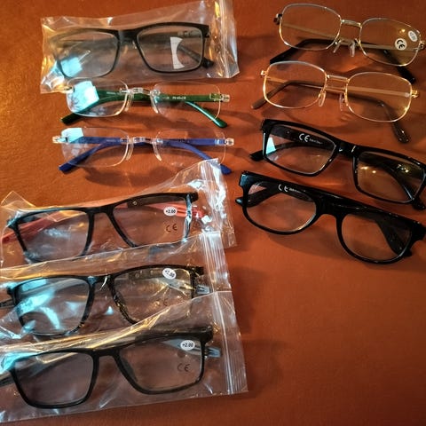 Briller, 1 par lette briller + 1,50 + snor.