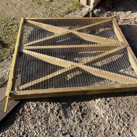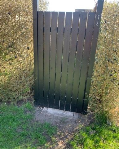 God solid havelåge med karm, har siddet i en murstensvæg mål H 166 x 89 x 8,3