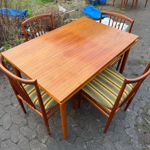 Smukt velbevaret antik spisebord i gylden teak af designeren Johannes Andersen.