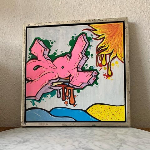 Maleri, Olie, Herligt og solrigt maleri i varme farver.