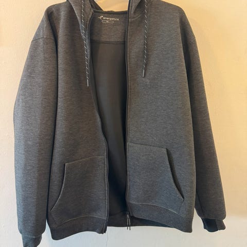 Lysegrå vindjakke med lynlås og hætte fra Energetics.