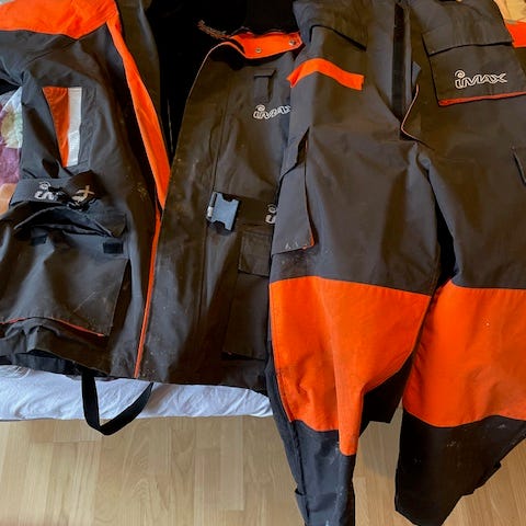 dragten er i god stand brugt 3 gange på ture fra Hanstholm bruges ikke mere pga. helbred bliver rengjort er lidt støvet