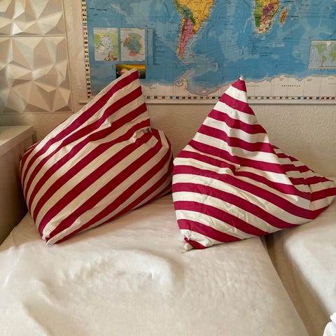 Stor Haribo sækkestol med kraftigt stof kun brugt til pynt, så nu skal den videre og have nyt liv.