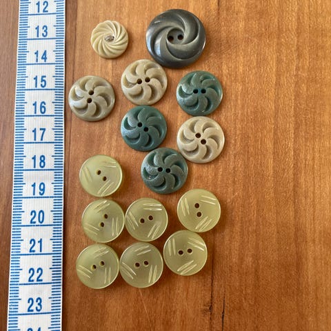 10 billeder med plastikknapper i blå plastik