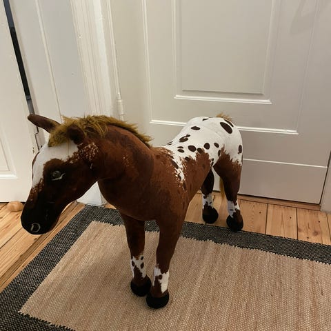 Small foot company, Kvalitetshest fra tyske Small foot Company. Den har vist både haft bevægelse og lyd, men der skal skiftes batteri. Ca 30 cm høj. Brugt meget lidt.